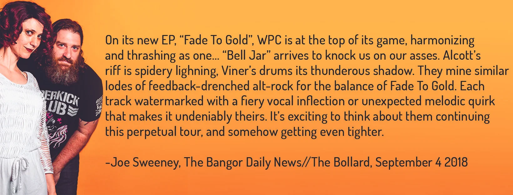 Trained as a jazz drummer and choral vocalist, Chris met Sasha, a self taught punk rocker and singer-songwriter in the spring of 2010 when they were both cast in a Bangor Maine production of the rock ‘n roll musical Hedwig and the Angry Inch. They have been working together ever since to find where disparate influences come together to create melody forward, hard hitting, genre bending rock ‘n roll. When Particles Collide has built a reputation as a must see band one show at a time touring all over the US and Canada. They are currently a full time, independent touring outfit living out of their 2014 Ram Promaster and rack up over 200 shows per year. Under their own record label, Unstoppable Rock Records they have released eight sets of recordings including three vinyl records (Photoelectric 2014-sold out, Ecotone 2016-currently in the album’s second pressing, and Fade To Gold 2018-Limited edition, hand screened artwork on Side B). Before becoming full time musicians Sasha taught high school chemistry for 18 years and Chris worked in the car business and as a nanny. Sasha and Chris were also married at the theater where they met in June of 2013.